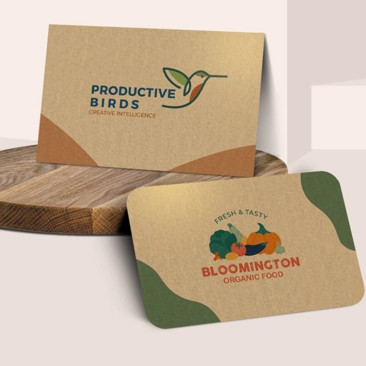 Kraft business cards feature earthy tones and natural textures, ideal for brands aiming to express authenticity and a grounded, rustic image.