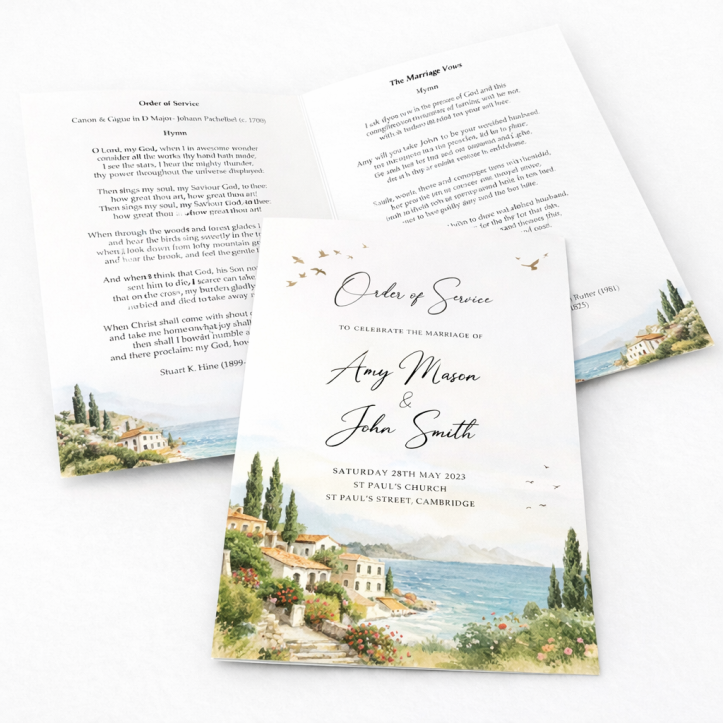 Your wedding day deserves nothing less than perfection, starting with the details. Our state-of-the-art printers bring your wedding order of service to life with vibrant colours, crisp text and precise finishing. Expertly saddle-stitched, these booklets are not only beautiful but made to last—just like your love. Whether you include favourite quotes, special memories or the story of how you met, we ensure every page is printed to perfection.